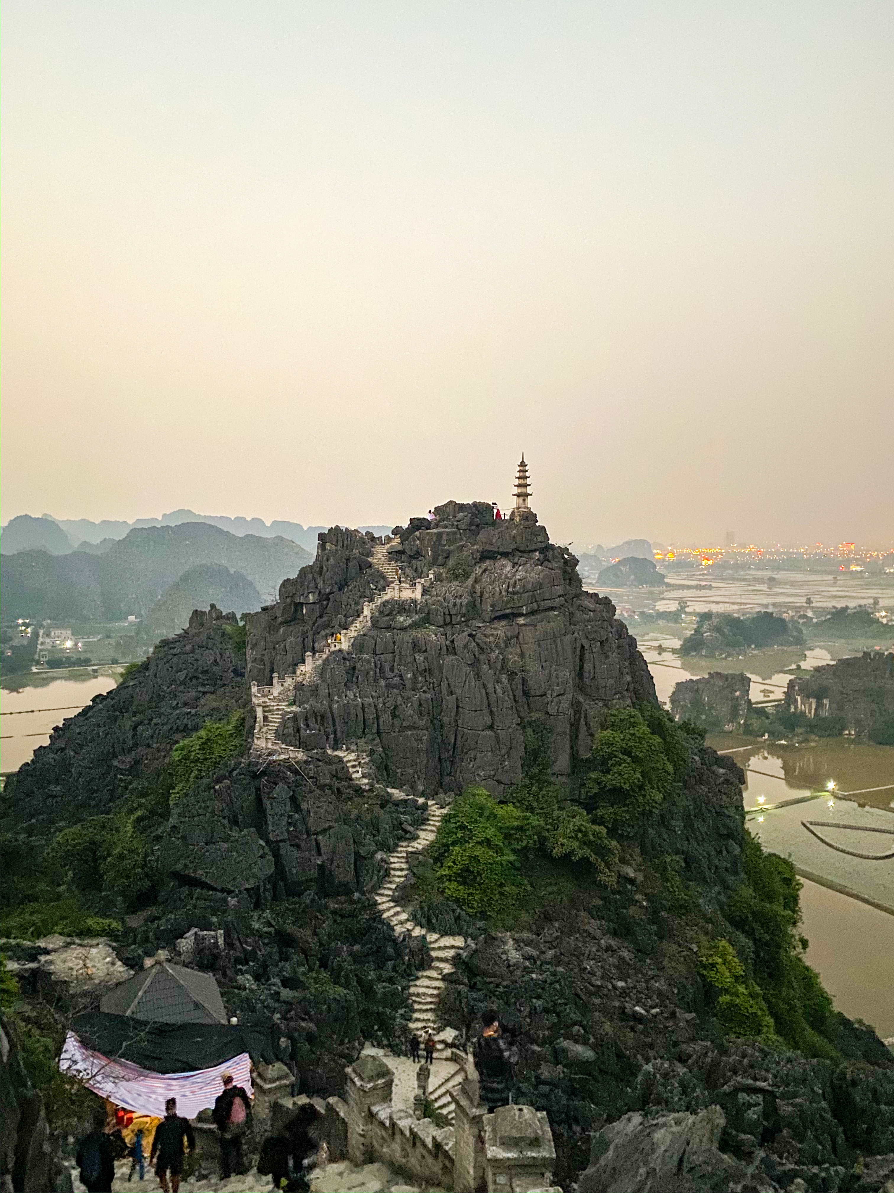 Ik dacht dat ik van doorstappen hield, maar mensen die maar 10 dagen op reis gaan hebben er nog meer vaart in. Na het huren van wat goedkope scooters, zo zagen ze er ook wel uit ook, gingen we op avontuur door het natuurgebied in de regio. Allereerst kregen we nog duidelijke instructies hoe het belangrijkste op de scooter werkte: de toeter. Ook even nadenken, in plaats van Australië waar men links rijdt, rijdt men hier uiteraard overal waar er plek is. Met een helm die half losschiet als je gas geeft en veel uitlaatgassen in je gezicht zijn we langs allerlei kekke natuurlijke bezienswaardigheden met als (letterlijk) hoogtepunt het Hang Mua viewpoint (dat waren veel treden).