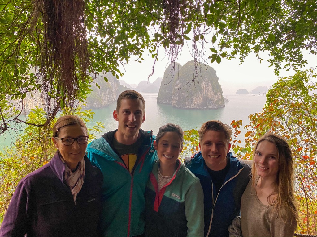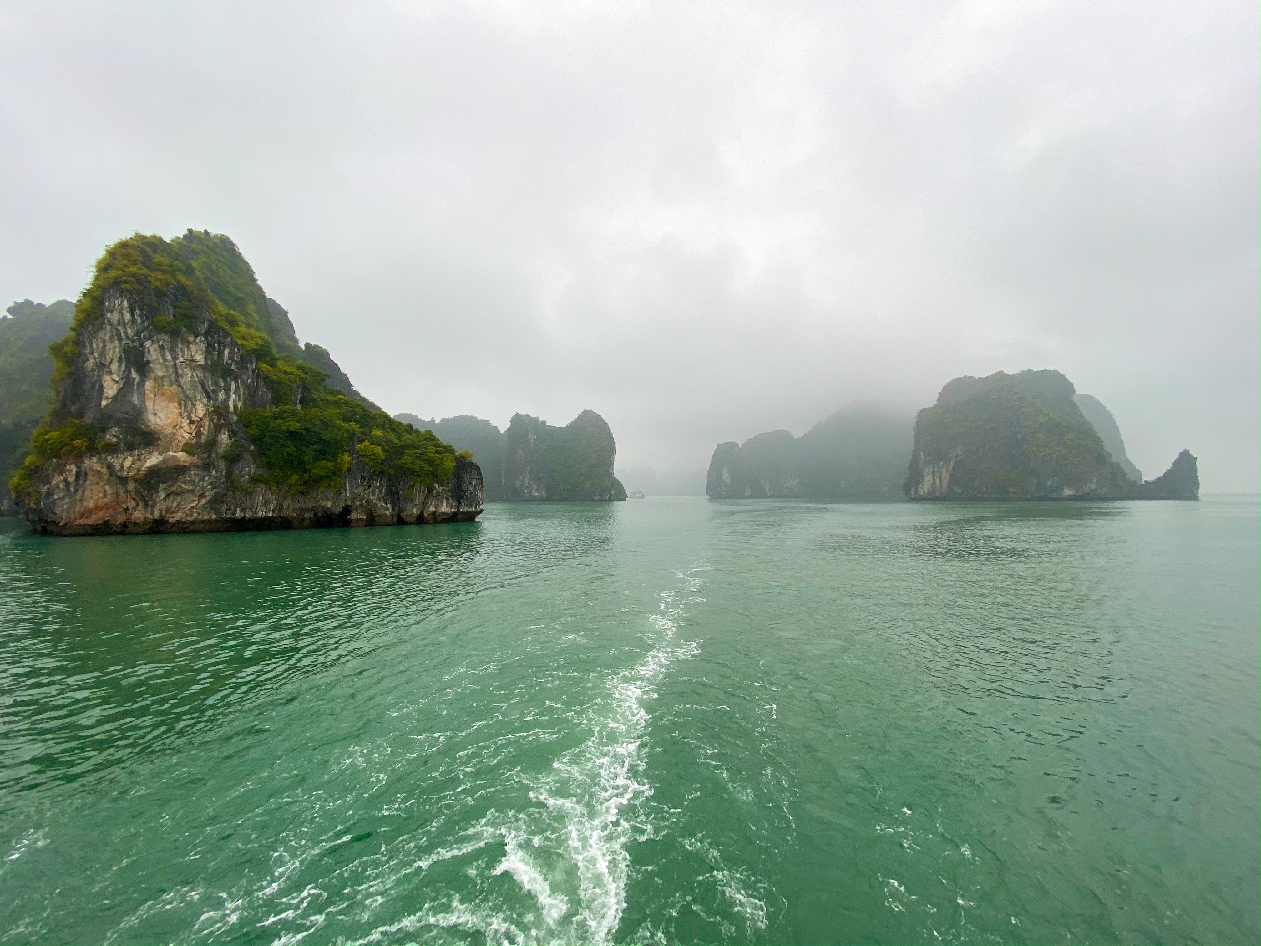 Een Amerikaans stel, een Australiër en Noor kwamen samen met mij aan boord en we hebben samen de tweedaagse toer gedaan in Ha Long Bay. Na een lunch op de boot mochten we snel door gaan richting de activiteit. Er was de keuze uit een boottocht waar iemand anders roeit of kayakken. Ik had nog nooit gekayakt en je moest zelf de hele route uitzoeken en er was een mogelijkheid om in de stroming naar zee af te drijven. Ik koos natuurlijk verstandig voor de kayak. Na lekker rondgedobberd te hebben in het licht regenachtige baaitje waar we waren en drijvende huizen van vissers te zien, kwam ik weer aan bij het begin van de route zonder te verdwalen en gingen we nog eventjes langs bij een parelfarm. Terug op de boot was het tijd om even te douchen en daarna een traditioneel Vietnamees diner te hebben – wat overigens veels te veel was. In de avond hebben we met de groep nog wat gedronken en zijn we inktvissen gaan vangen. We hebben er één kunnen vangen, die door de schrik al zijn inkt uitspuugde in het water. Voor de dierenliefhebbers: hij is weer vrijgelaten. Na een goede nachtrust begon de volgende ochtend weer vroeg met wat ochtendoefeningen op het dek: Tai Chi. Na deze oefeningen heeft iedereen een danspartij’tje ervan gemaakt en ben ik snel weggelopen.
