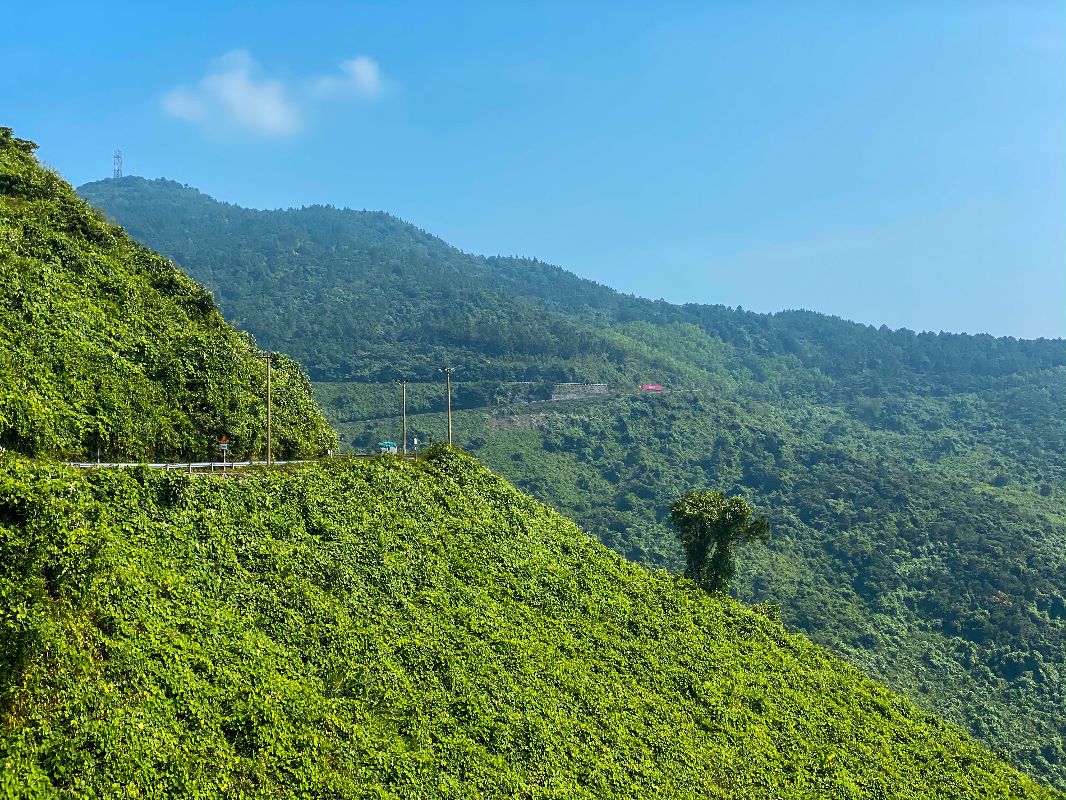 Uiteraard is dit natuurlijk niet alles wat men doet in Da Nang, er is veel meer meer te beleven. Zodoende heb ik weer een scootertje gehuurd en ben ik op pad gegaan naar de omringende de natuur, de Hai Van Pass en de Ba Na hills. De verhuurder waarschuwde mij dat ik bepaalde delen niet in moest rijden omdat de politie daar graag toeristen aanhoudt en geld vangt, wat lief van deze verhuurder. Het was een prachtige dag, dus lekker toeren had ik wel zin in. Halverwege de tour door de bergen was er een oud vrouwtje die graag wilde dat ik bij haar parkeerde, natuurlijk om wat te kopen van haar. Nadat ze ook nog grappen ging maken dat ik als een kreeft kan verbranden, heb ik haar vriendelijk een middelving… ik bedoel een tros bananen gekocht en ben ik verder gereden. Na de tank weer gevuld te hebben voor 2 euro ging ik naar de heuvels, hieronder nog wat foto’s van de passage.