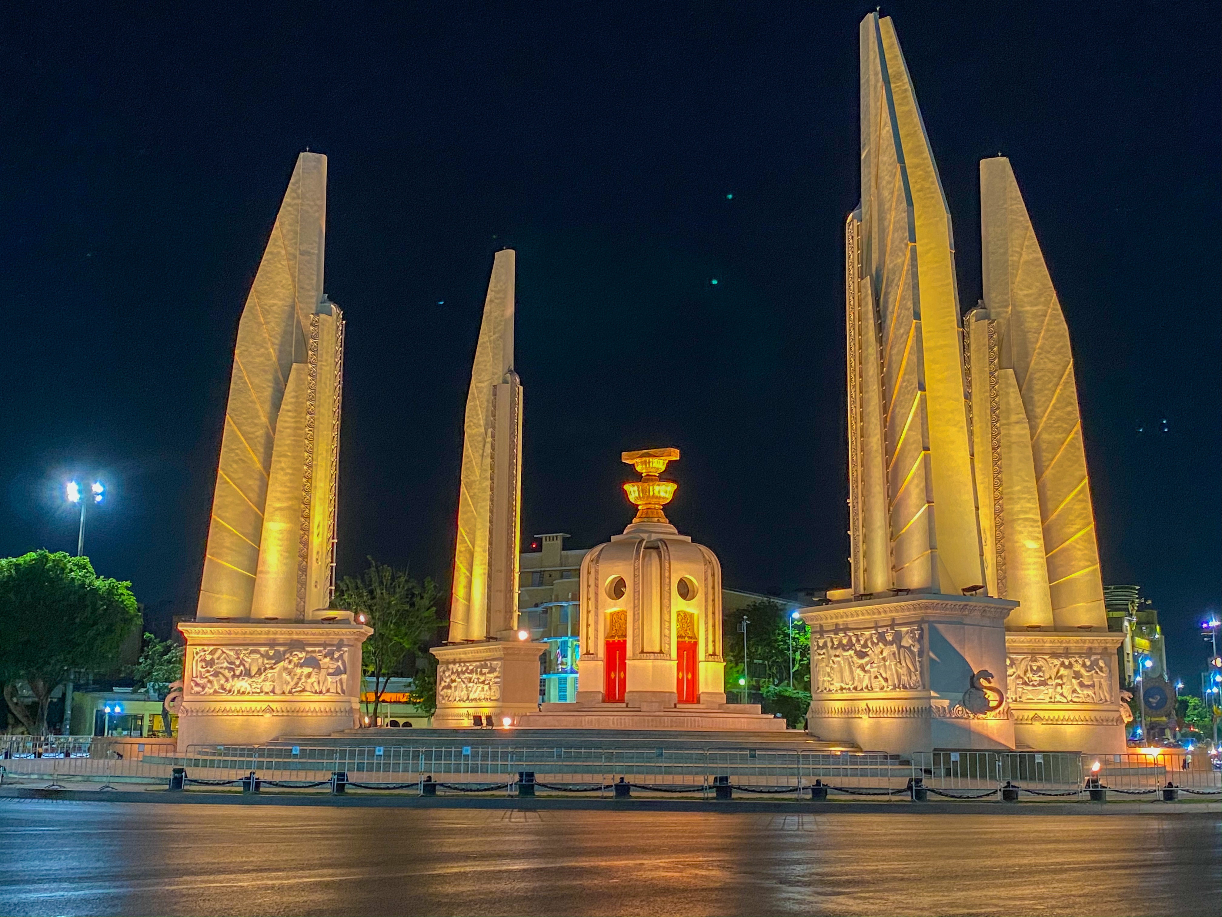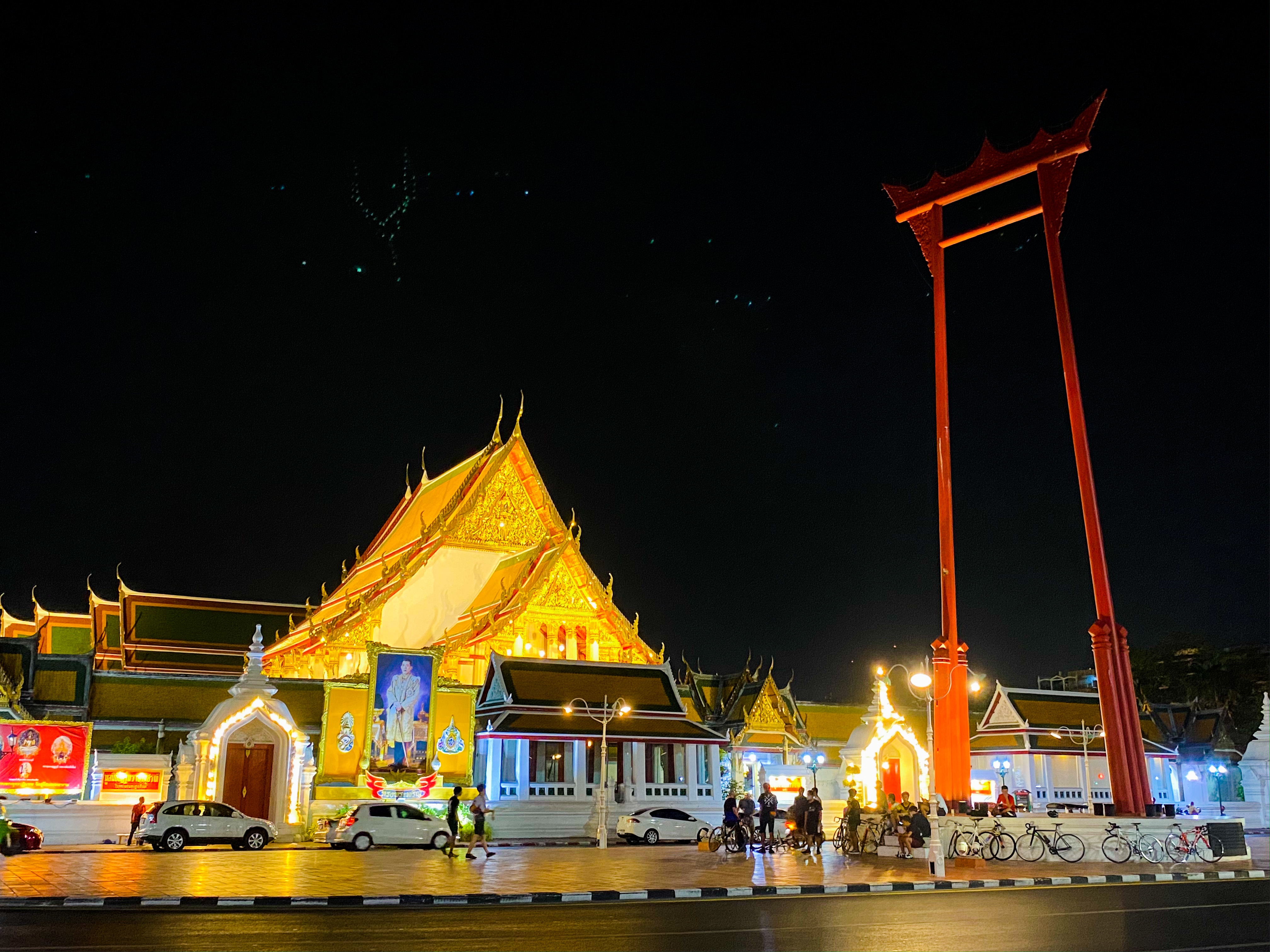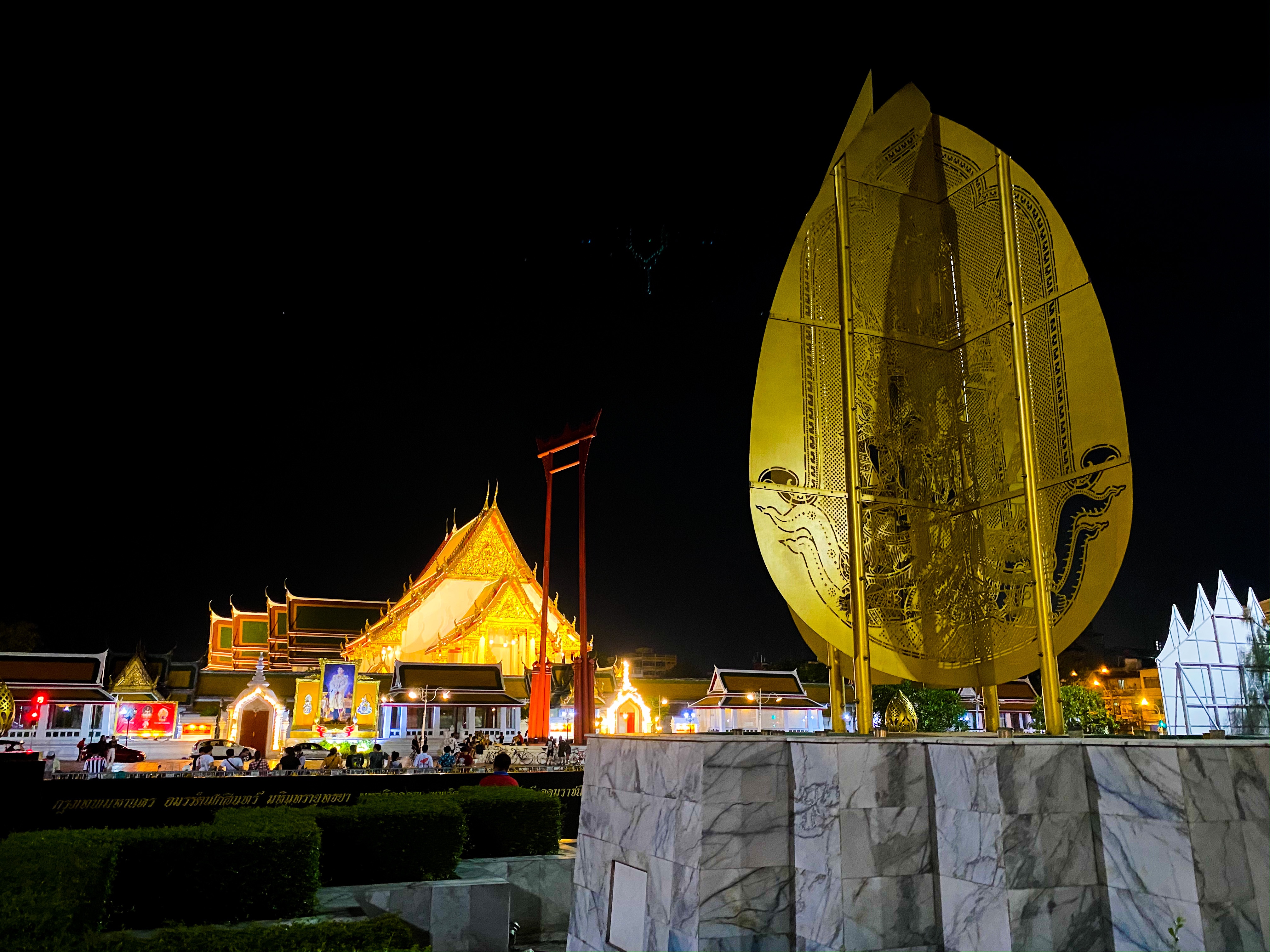 Bangkok heeft ook zo zijn schoonheden in de nacht, wat ook een iets minder moordende temperatuur is, een graadje of 34 is toch al wel verfrissend. Zo zijn er onder andere het monument voor de democratie en de Giant Swing. Khao San Road is ook een standaard toeristen straatje met wat mij betreft weer iets te harde muziek en iets te veel impulsen. Zo was het pleintje bij de Giant Swing vrij rustig met een aantal mensen, om even van de avond te genieten!