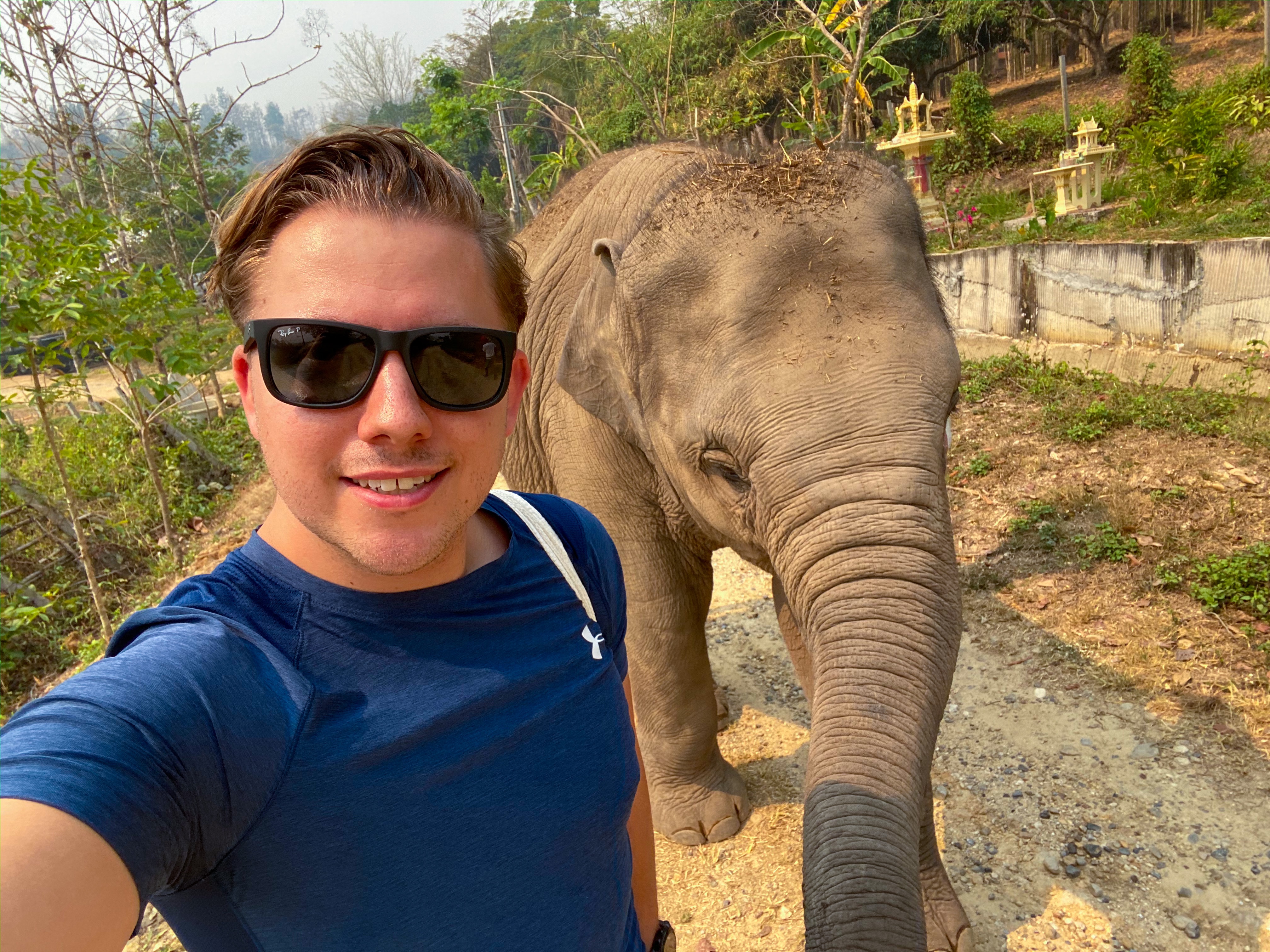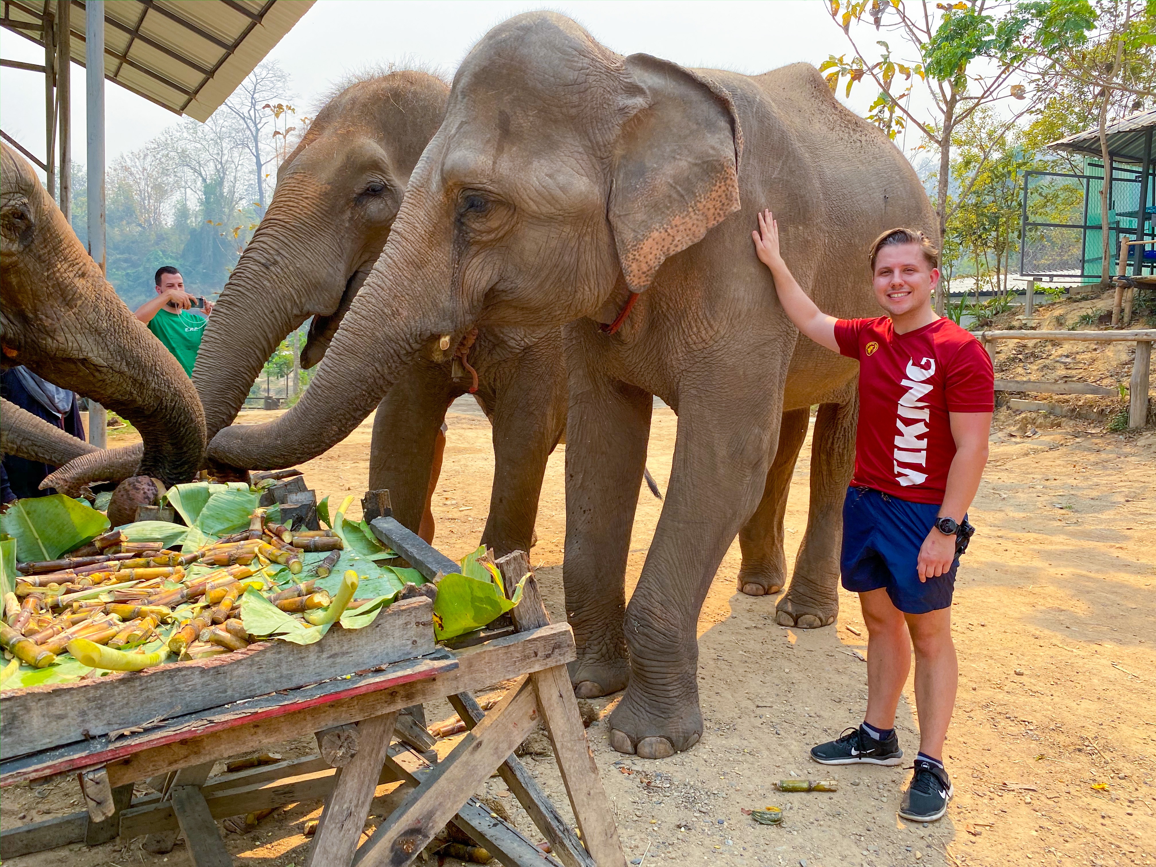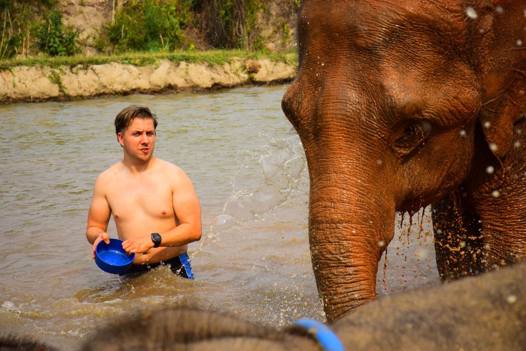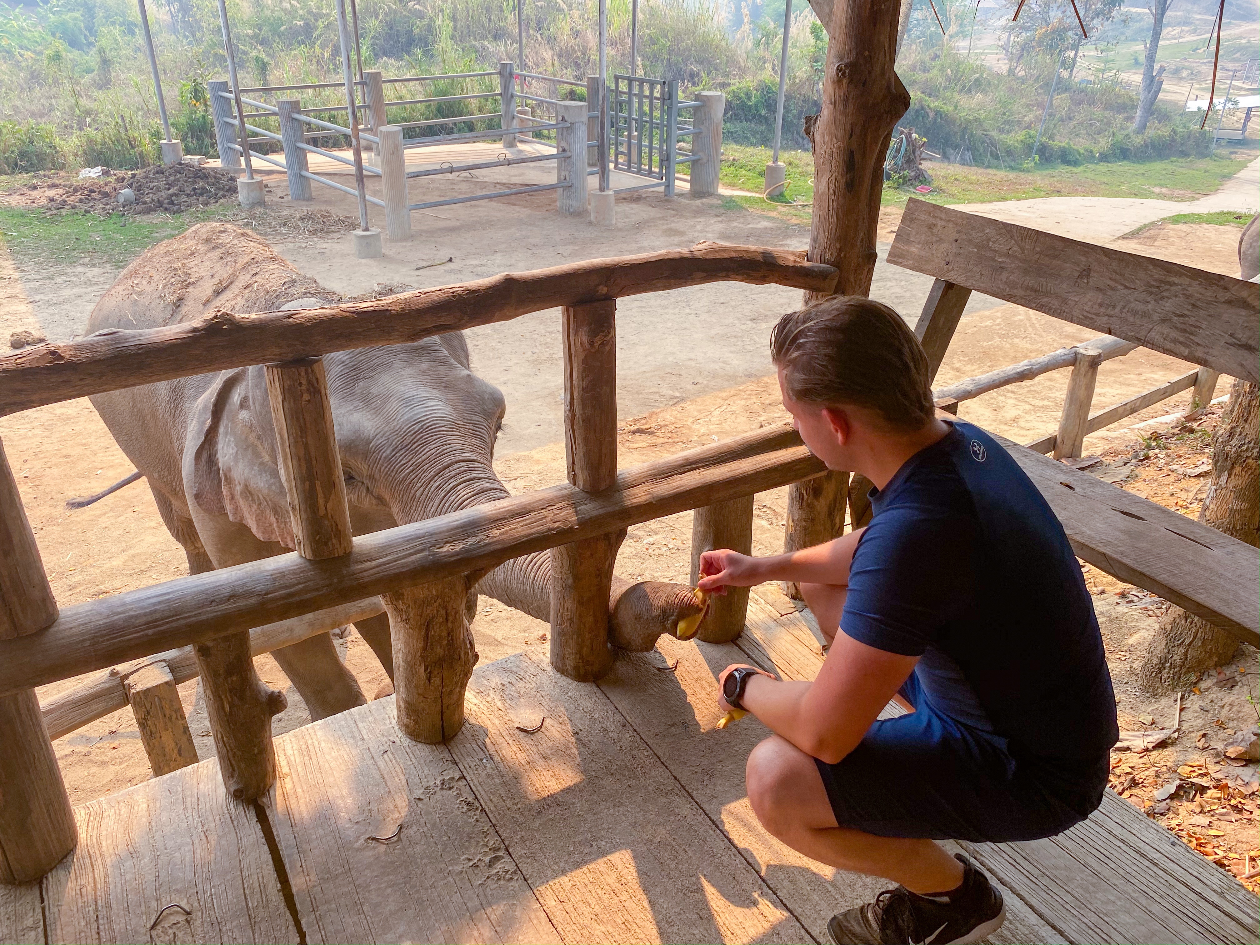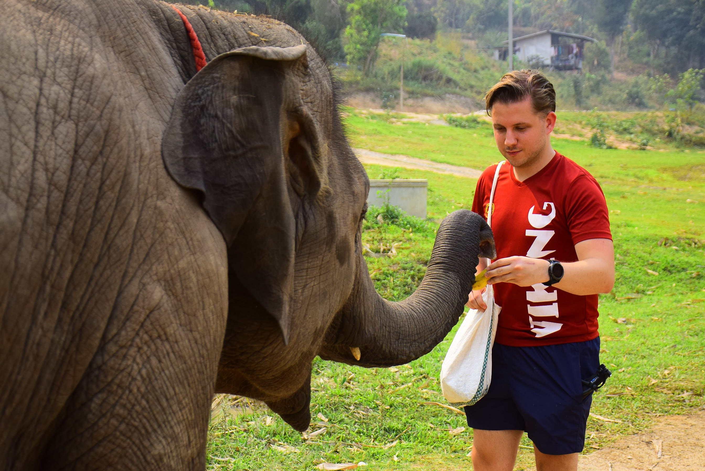 Van Chiang Rai naar Chiang Mai en amai, wat een mooie dag was dit. Aan het begin van de ochtend werd ik opgehaald om richting het Eliphant Retirement Park te gaan. Een heel dagprogramma dat onder andere bestond uit wandelen met de olifanten en ze bananen en suikerriet voeren, de babyolifant van vijf jaar was nu al groter dan ik. Dat is overigens niet lastig, maar toch. Heel tof om te zien hoe zulke grote sterke beesten zo vredelievend kunnen zijn.