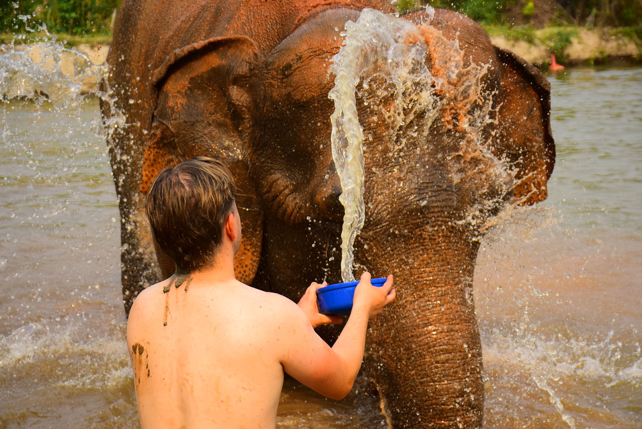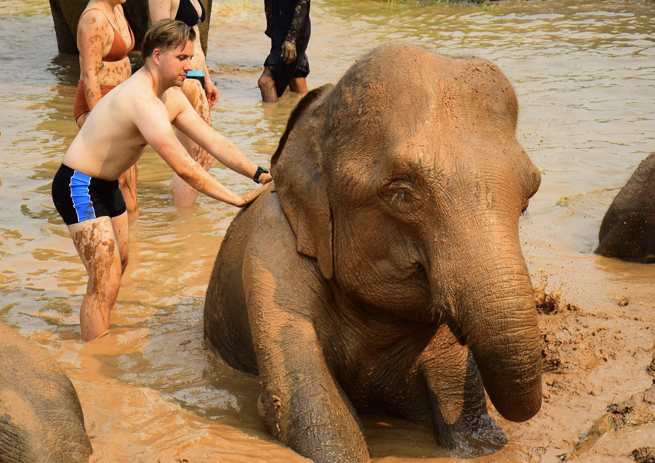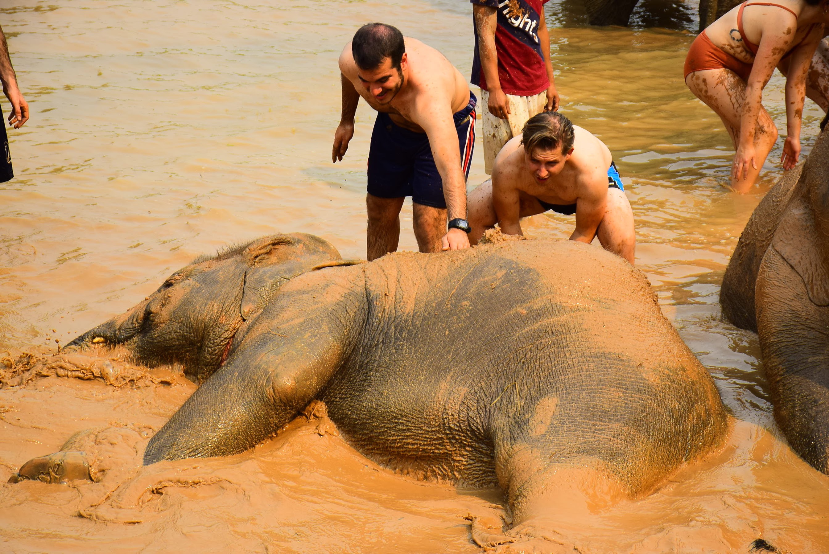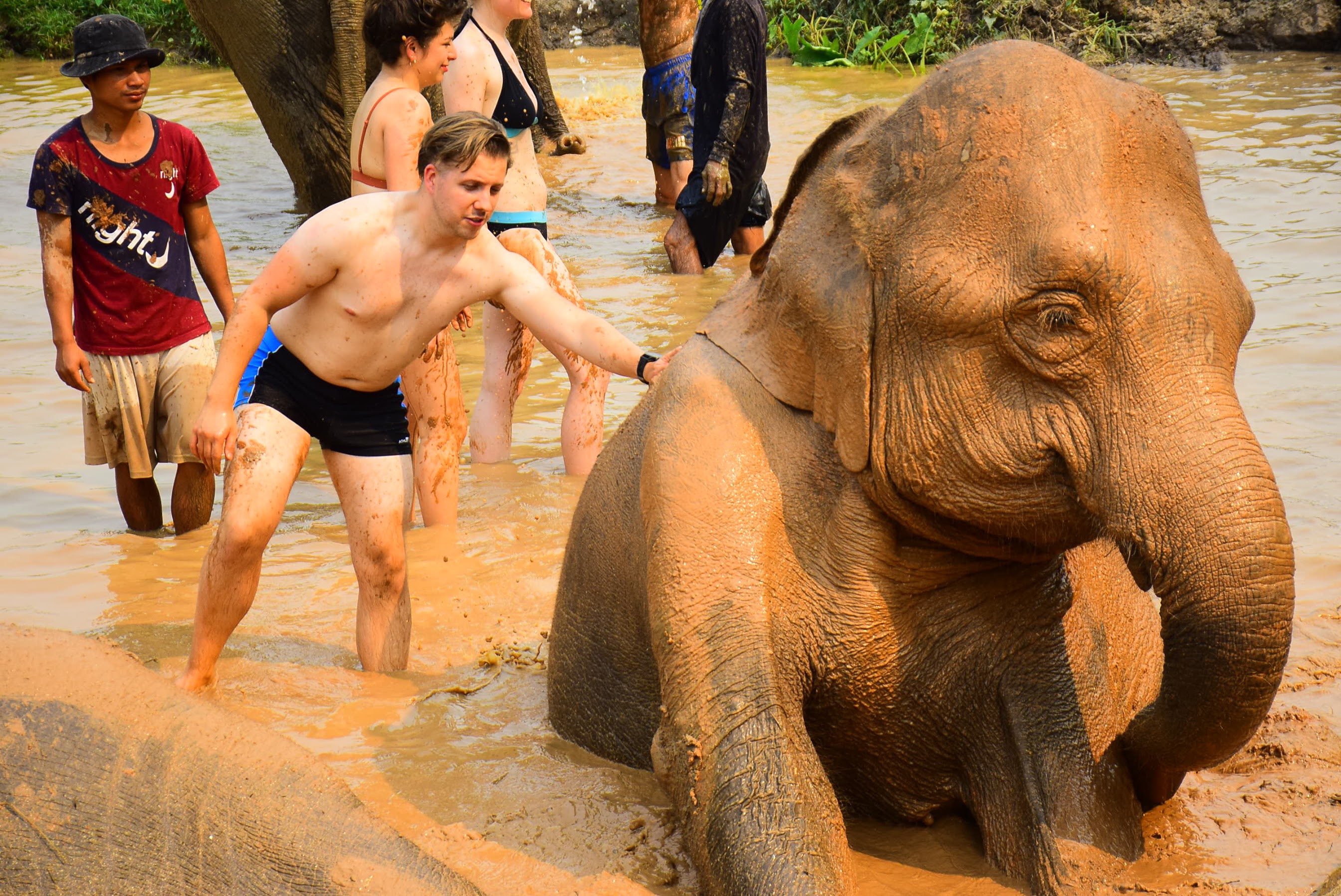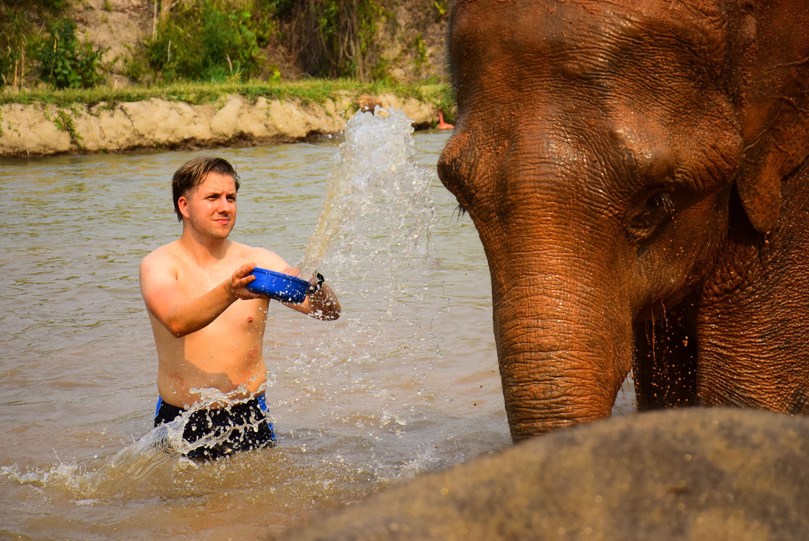 Met een groep van 9 man en verzorgers mochten we ook nog de olifanten eerst een modderbad geven, blijkbaar gaan ze er heel erg lekker op om gescrubd te worden en is het als een dagje bij de spa. Alleen doen ze dit verdomme vier keer per dag! Na het modderbad moesten ze ook weer afgespoeld worden, waar ze ook maar al te graag van genoten.