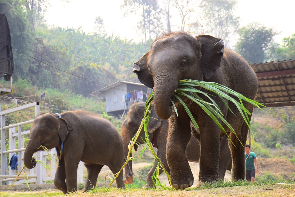 Na een zeer vermoeiende inspanning, was het tijd om te gaan lunchen met wat mooie gefrituurde banaantjes en andere Thaise gerechtjes. De olifanten hebben hier verder wel een prima leventje, want hun tweede voedsessie ging van start. Aangezien het Eliphant Day is in Thailand (want waarom ook niet?), kregen ze een buffet met pompoen, mais en suikerriet. Daarna kregen ze nog meer bananen en deze beesten weten dondersgoed of er nog wel of geen bananen in je tas zitten. Als je rustig met ze loopt en je verhoogt je tempo, dan gaan zij ook gelijk een stukje sneller lopen. Ze zullen geen hap eten missen.