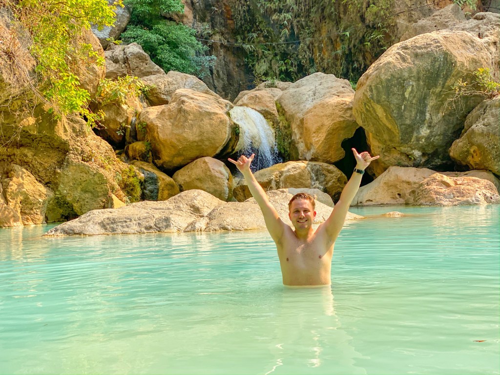 De tweede volle dag had ik dezelfde gids met zijn mooie tuktuk die doorhad dat ik ondertussen wel klaar was met allemaal tempels en pagoda’s en had een mooi idee om naar een blue lagoon te gaan, die ik voornamelijk voor mezelf had met een paar andere locals en een sporadische toerist. Met een mooie bbq met wat vis was dit een relaxed maar mooi dagje.