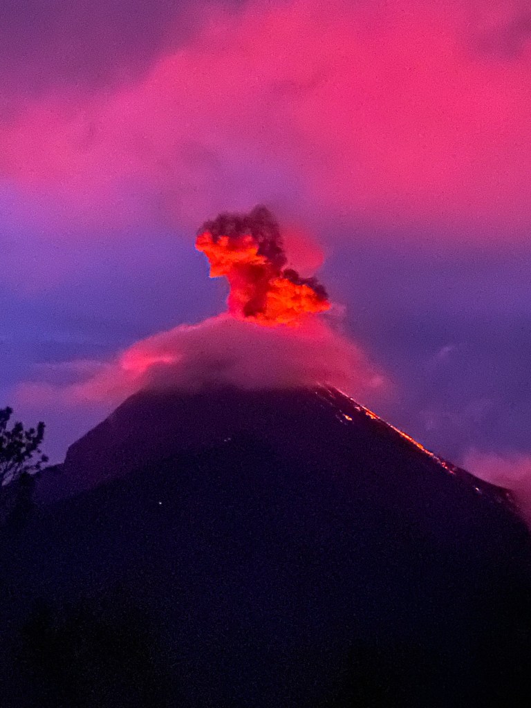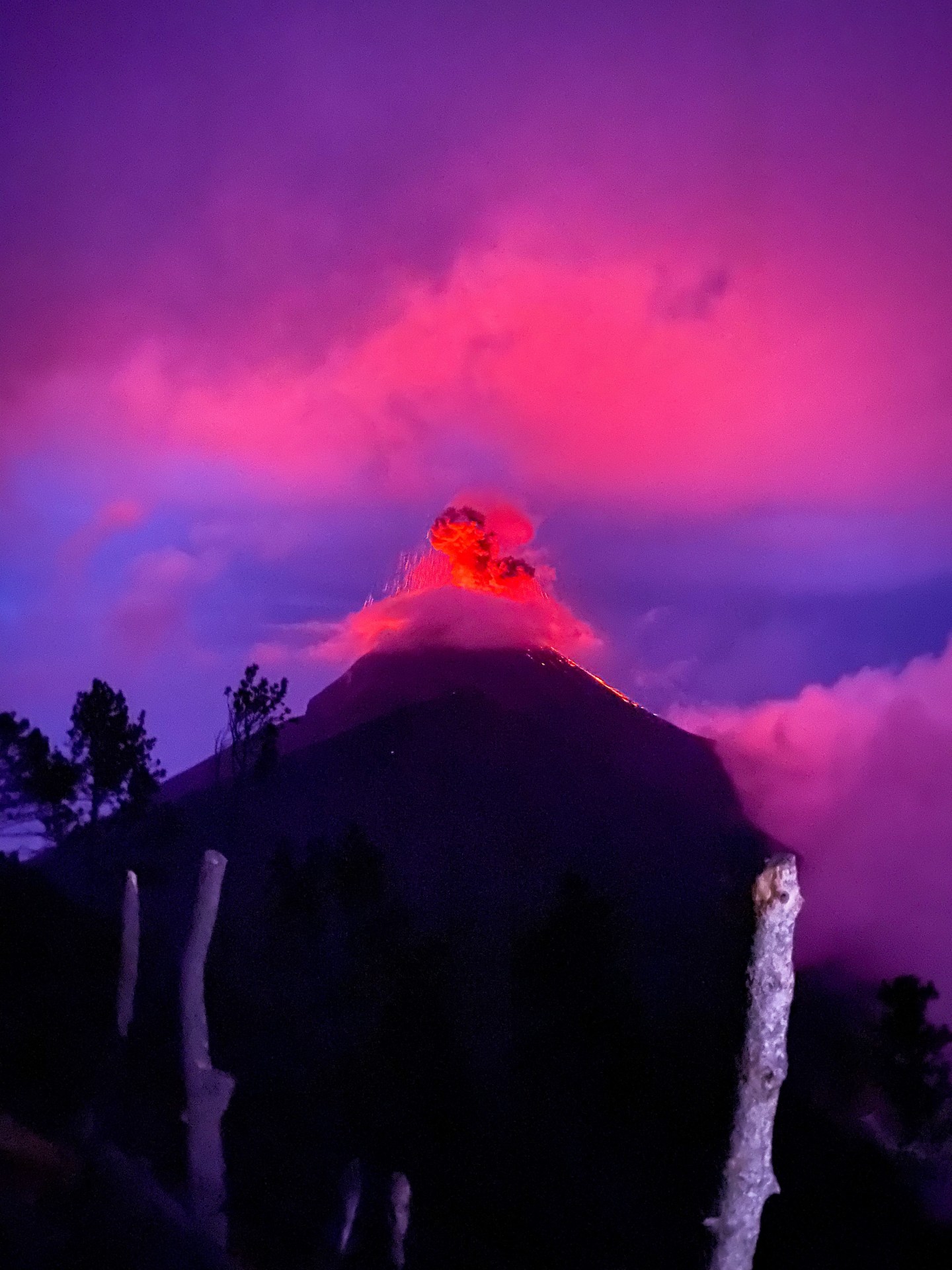 Het was wel al einde van de middag, maar het voelde al als 9 uur, het was ook goed koud, toch zeker wel een graad of 5 (of misschien lager). Na een goede inspanning is het het warm krijgen dan ook geen sinecure. Ik ben zelf rond een uur of acht onder de dekens gekropen, nadat ik de vulkaan een goed aantal keren heb zien ontploffen. Om negen uur ging nog een groep van het kamp waar we zaten naar de vulkaan hiken, maar dat heb ik niet meer meegemaakt. Overigens ook geen spijt van, ik hoorde dat dat ook een uur of vijf was, gedeeltelijk in de regen. Ik kan wel zeggen dat de vulkaan adembenemend was om te zien. Ik heb daar een goede portie van de tijd naar zitten staren. Ik laat de beelden wederom spreken!