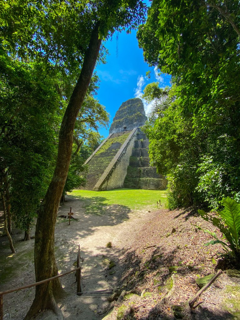 De spierpijn van de vulkaan was nog aardig opgekomen, dus de tour van 7-8km door Tikal heeft wel een beetje pijn gedaan, vooral als het weer wat omlaag ging. Dat was het wel volledig waard, want elke keer kwam er weer een nieuwe taffesgrote tempel tevoorschijn tussen de bomen! Een heel mooi iets om te mogen aanschouwen!
