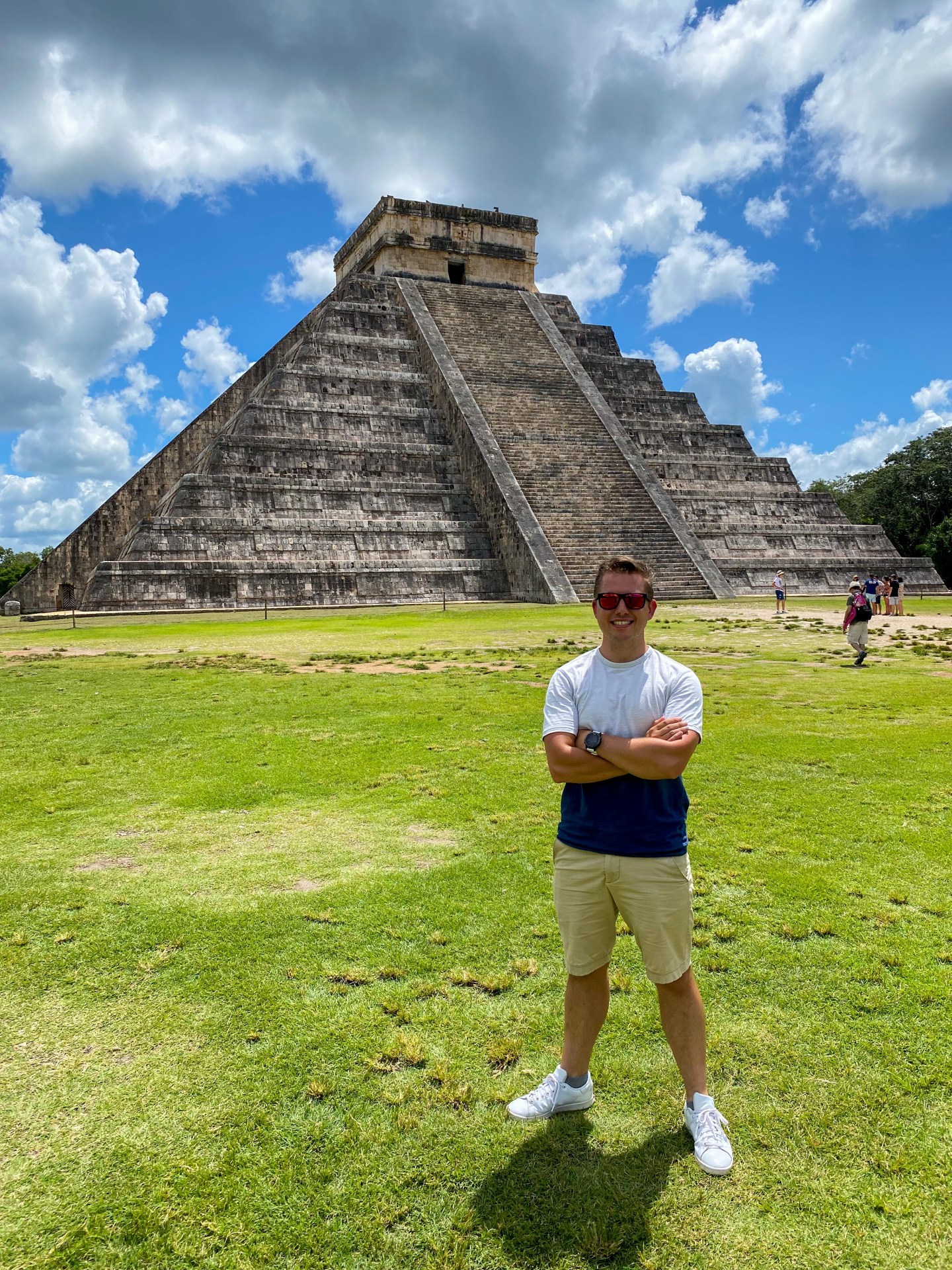 Een van de zeven wereldwonderen, Chichen Itza. Een complex van ruim 20 bij 20 in kilometers, maar het meeste van de gebouwen is allang vergane glorie. De grote pyramide is in de afgelopen tijd wel bijgehouden, hoewel dat ook maar deels is. De andere kant is een stuk slechter onderhouden. Naast het eerder bezochte Tikal, is Chichen Itza een belangrijke plaats voor de Maya’s. Deze tempel werd vooral ook gebruikt om te kijken welke datum het was aan de hand van de inval van het zonlicht. Sterk staaltje rekenen konden ze hier in Mexico midden in de jungle wel! Al met al wederom een imposant iets om te mogen aanschouwen hier.