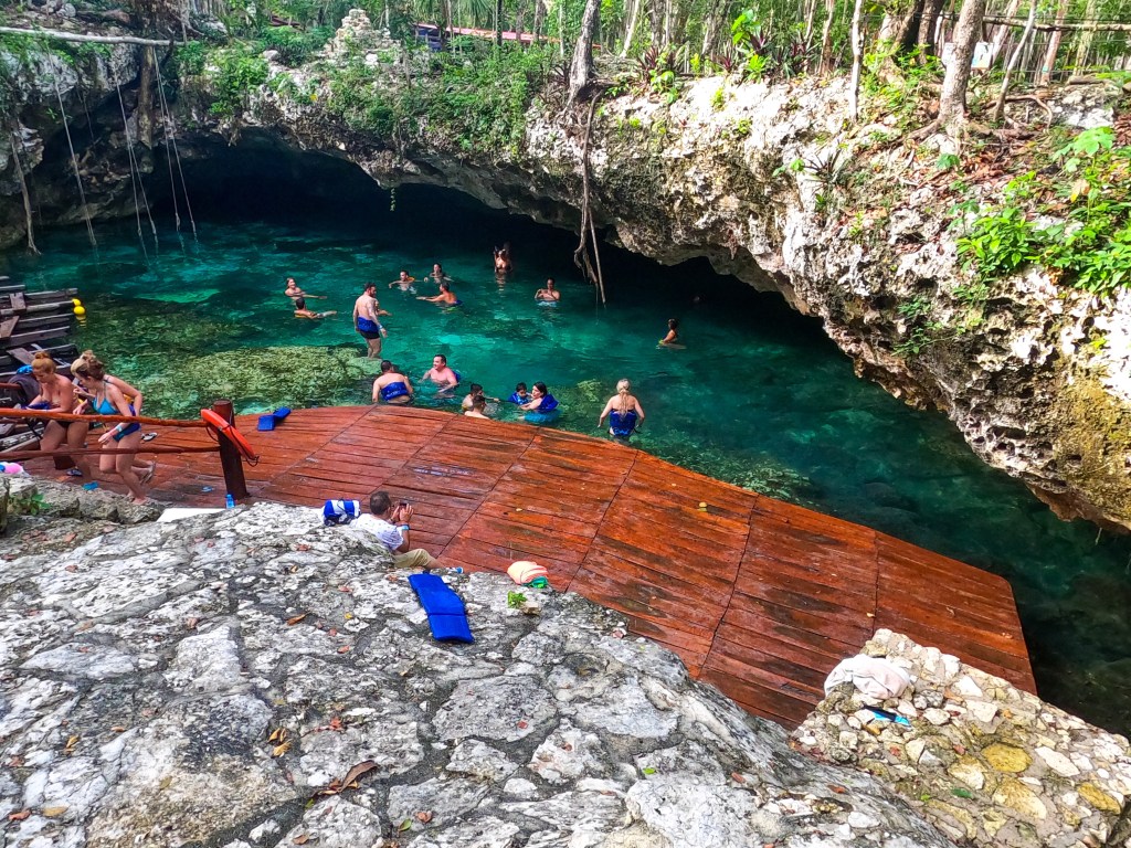 Dat brengt mij alweer bij de laatste stop van de dag, de cenote. Een stuk kleiner, en kouder, dan de vorige. Maar na een warme dag in de zon, en ook de regen, was een korte duik niet verkeerd. Mooi om hiermee de tourtjes af te sluiten.