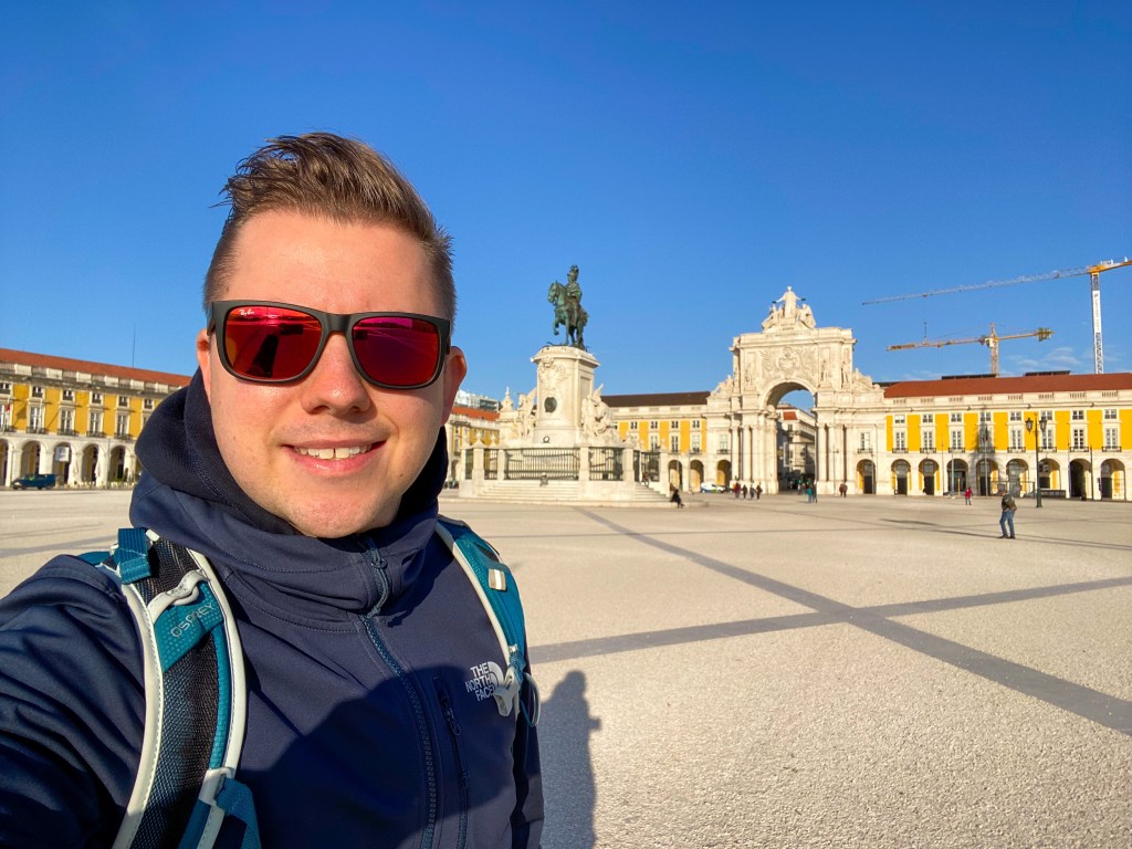 Ik vloog op donderdagavond en kwam pas na middernacht (en uiteraard 1 uur verschil!) pas aan in het hostel. De dag erna ben ik vroeg op pad gegaan en was het nog wel wat fripser dan ik aanvankelijk dacht. Aangezien mijn hostel lekker in het centrum lag was ook veel te lopen. Zo kwam ik langs de Praça do Comércio, een groot pleintje met een boog. Dit plein lag ook aan het water, en dat leverde weer mooie kiekjes op.