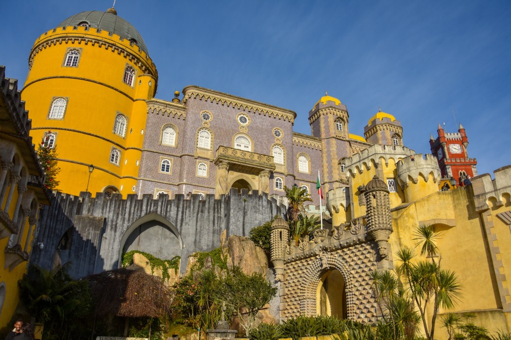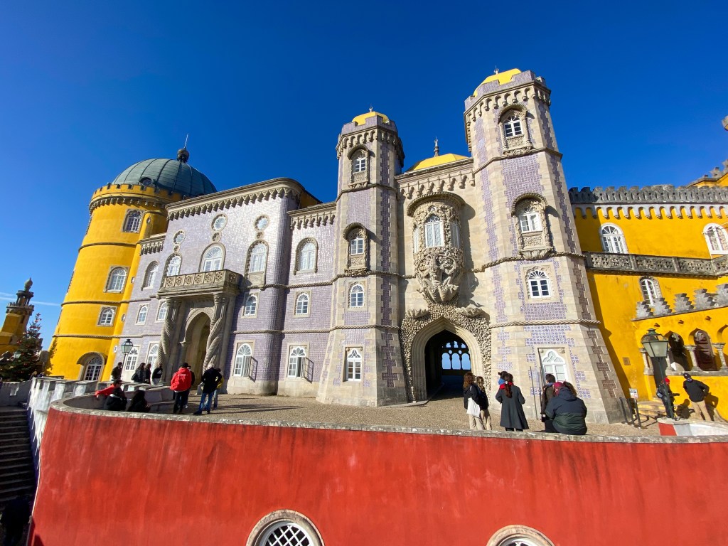 Een volgende dag, dus ook weer een volgend reisje! De dag begon net na zonsopkomst op een wat grotere hoogte bij het Palácio da Pena, een leuk verblijfje van de Portugese koning Ferdinand, die eigenlijk een Wienerschnitzel was. Een mooi optrekje dat hij liet bouwen om te laten zien hoe rijk hij was en om deels aan zijn vrouw te geven. Dat laatste ging een beetje mis aangezien die twee jaar voordat het klaar was tussen 6 plankjes afgevoerd werd; een gevalletje van ‘da’s pech, kech weg’. Verder was alles relatief bescheiden en niet heel pompeus, behalve dat het 17 jaar geduurd heeft voordat het af was. Het uitzicht was verder prachtig, terwijl er normaal veel mist zou zijn. Dit tourtje werd vervolledigd in het nabij gelegen dorpje van Sintra waar we op eigen gelegenheid wat konden gaan lunchen.