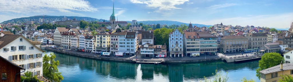 Waar de meesten denken aan hoge bergen met veel sneeuw en wat kouder weer, was Zürich alles behalve dat. Schitterend warm weer aan een verkoelend meer. Dat geheel weer omringd door heuvels brengt tot een mooi uitzicht en plaatjes.