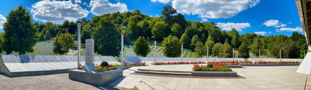 Na de grensovergang reden we kort door naar het monument van de genocide van Srebrenica. Recht tegenover de oude compound van Dutchbat was dit indrukwekkend om te zien.