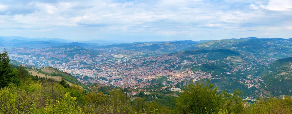 Na deze indrukwekkende tussenstop reden we door naar de hoofdstad Sarajevo. Niet geheel zonder slag of stoot kwamen we daar aan, en konden we inchecken bij het appartement. Het was wel taffesdruk in de stad, omdat er een filmfestival was. Om de drukte van de stad te ontsnappen hebben we een kabelbaan naar een wat hogere positie gepakt om een mooi overzicht van de stad te krijgen! Deze is pas een paar jaar weer opererende, nadat deze een paar decennia geleden volledig overhoop geschoten was.