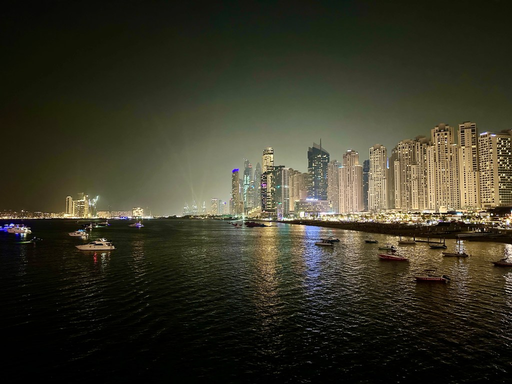 Toch enigszins langere vlucht dan ik aanvankelijk had verwacht, zeker een uurtje of 7. Bij aankomst kon je wel merken dat dit land iets te geavanceerd is, aangezien de Uber die mij kwam ophalen een Tesla was. Na een stukje file rijden kwam ik aan bij het hostel dat ik geboekt had (ja, een hostel in Dubai!). Ook als enigszins ervaren reiziger maak je nog fouten, en dit hostel bleek er een te zijn. Afin, het hostel was wel bij de Marina Beach, ook een mooi toerisitisch stukje in Dubai. Nadat ik de spullen snel had gedropt ben ik er gelijk op uitgegaan en kon ik de mooie highrise verkennen die Dubai al te bieden had. Lichtvervuiling zijn ze hier ook wel bekend mee. Aangezien het al een korte nacht was, wilde ik op tijd terug naar het hostel om, nadat ik snel wat in m’n mik had geschoven, wat slaap in te halen. Niks bleek minder waar, want ik had ongeveer het enige bed dat direct boven m’n hoofd de lamp van de kamer had, 3 mensen graag elke boom die je nog kon vinden in de Emiraten wilde omzagen en het bed lag als de meest harde plank die ik ooit had gezien. De ochtend erna besloten om niet m’n dagen hier te laten verpesten door een hostel en maar gelijk verkast naar een hotel. Dat was een zeer ruime kamer en het uitzicht vanaf de kamer was bizar, geen spijt van deze keuze.
