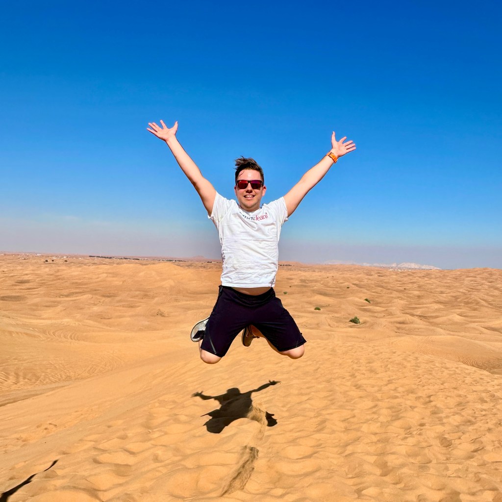 Hierna gingen we nog met de 4×4 wat Dunebashing doen, waarbij er, zoals de naam al suggereert, keihard door het duinlandschap wordt geramd. Heel gaaf om als in een soort centrifuge door het landschap te dartelen om uit te komen bij een hoge duin waar we vanaf konden sandboarden. Dat begon heel goed met eindigen op m’n reet onderaan de heuvel! Ik kwam er nog achter dat ik zelf ook omhoog moest klauteren, wat de conditie toch wel zeer aan het uitdagen was.