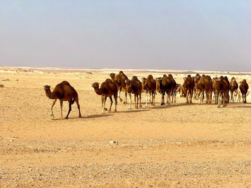 De toer was met een totaal van 6 man, waar er 2 Walen hun geëmigreerde moeder kwamen bezoeken en nog 2 Duitsers die elkaar van de studie kenden en rondtrokken door het betoverende Tunesië, met al het lokale openbaar vervoer. Enfin, we begonnen de toer door de zandvlaktes en kwamen een herder met een groep dromedarissen tegen. Na een snel kiekje vervolgenden we onze weg weer met een goed tempo onder het genot van het gezang van Celine Dion.