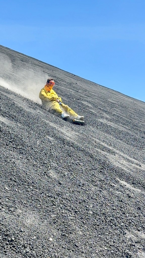 Na het korte intermezzo in de hoofdstad kwam ik aan in een andere grote stad: León. Een stad waar je toch wel kan stellen dat de revolutie in Nicaragua zo’n beetje begonnen is, maar ik zal daar in een latere post nog meer over uitweiden. Eigenlijk was de grootste activiteit die mensen hier in de buurt kennen: het beklimmen en afrazen van de Cerro Negro, de jongste vulkaan in Centraal Amerika en nog steeds actief. Een stuk steiler dan andere klimmetjes en zo’n slee naar boven meezeulen is net iets anders als je vol op de flanken van de vulkaan door de wind wordt gepakt, maar wel op zichzelf een gaaf avontuur om mee te maken! Hoewel het naar beneden razen niet gevaarlijk is, wil het niet zeggen dat er geen risico’s zijn. Eentje uit de groep vond het leuk om volle bak naar beneden te razen en 70 per uur te behalen, die kwam daar ook goed achter toen hij halverwege de controle over zijn board verloor en door de asslopen van de vulkaan naar beneden rolde.