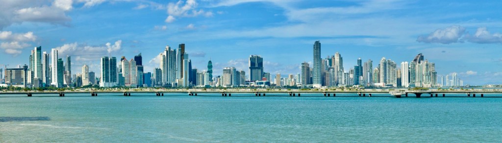 Panama City, de hoofdstad van het land dat in 2’n gehakt is zo’n 100 jaar geleden door Teddy Roosevelt (waar de Fransen destijds niet in geslaagd waren). Aangezien de Verenigde Staten pas zo’n kwart eeuw geleden volledige beschikking over het land hebben terug gegeven aan de Panamezen, is er nog veel te merken van de invloed van Uncle Sam. In de zone die het kanaal omringt zijn er nog vele huizen/gebouwen in Amerikaanse bouwwstijl te vinden en nog vele Amerikanen wonen hier, zij het niet meer in de vorm van een bezettende macht.