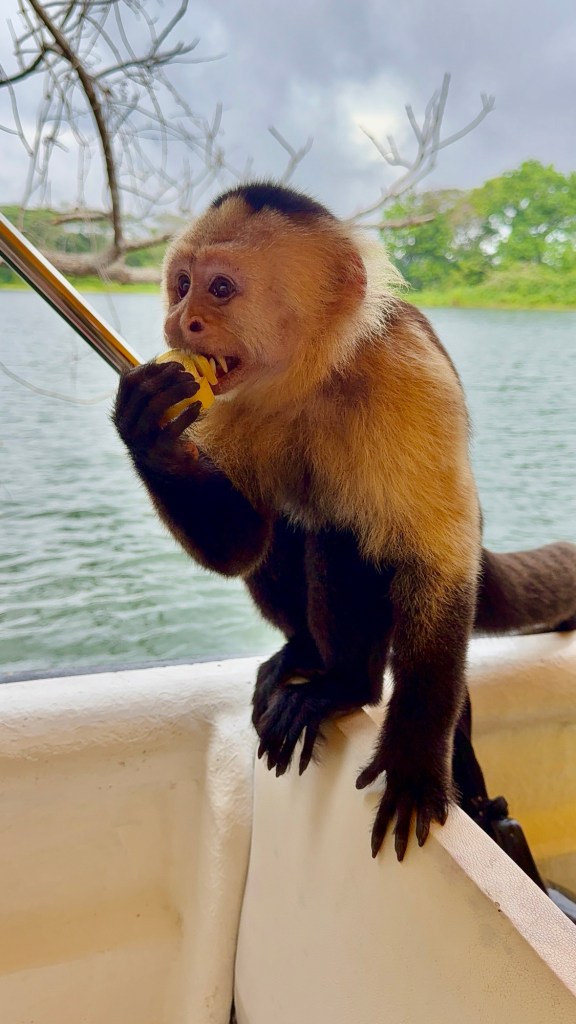 Het Panama kanaal is toch wel een knap stukje ingenieurschap, wat eerst een relatief stroompje was, is uiteindelijk een heel meer geworden door het bouwen van een dam. Waar we in Nederland goed zijn in droogleggen, doen ze het hier andersom! Er is ook een aardige dierenbevolking in het bos te vinden, waaronder wat aapjes die wel mensen gewend zijn en aan boord komen om gratis snacks te krijgen!