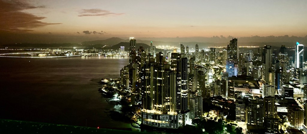 Vanuit Bocas del Toro kwam ik aanvliegen bij Panama-stad, mijn vlucht was wel met 2 uurtjes vertraagd doordat blijkbaar de President zin had in een paar vakantiedagen en was geland op de kleine airport om even te zwaaien bij ons (en enige) gate. Een mooi uitzicht op the Bridge of the America’s, uiteraard aangelegd door de Amerikanen eind jaren ‘50, om de twee continenten toch weer te verbinden.