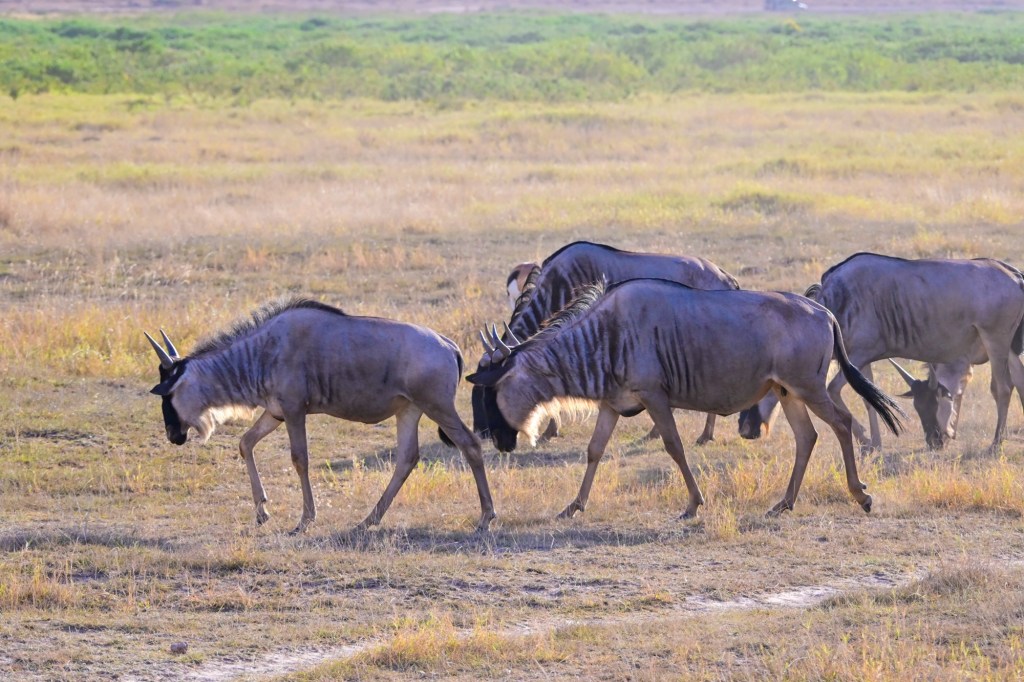 Niet veel later was er gnoe wildlife te spotten (slechte woordgrap)! Waar we zelfs een hele rits olifanten zagen komen aanhobbelen om de weg over te steken!