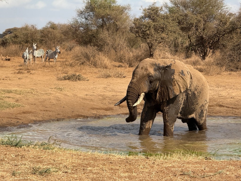 Ongelofelijk gave ervaring zo’n eerste game-drive en we kijken uit naar nog meer moois dat gaat komen! Als kleine afsluiter kwam meneer de olifant nog langs bij de drinkplaats die bij onze lodge lag, er zijn mindere plekken om te ontbijten!