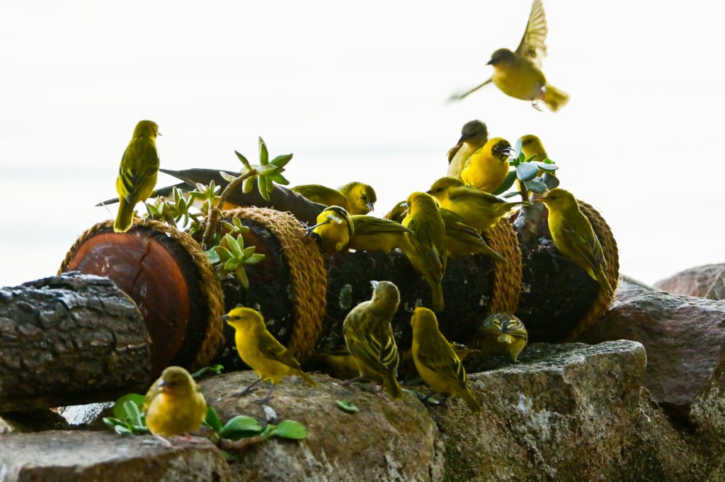 Bij de lodge was er iedere keer vele gele vogeltjes die ook wat kwamen eten, die af en toe verdreven werden door de grotere vogel. Uiteraard kon ik die grote lullo niet waarderen, dus na 3x streng aankijken had hij de boodschap wel begrepen.