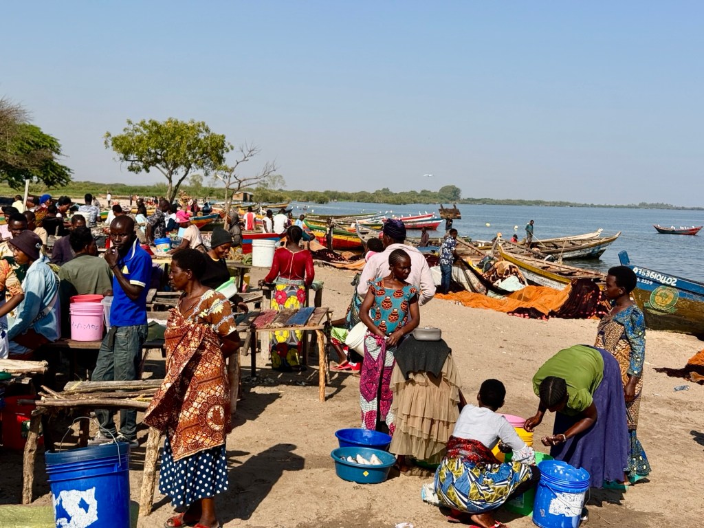 We hadden bij aankomst in Lake Victoria nog een boottripje met een iets te enthousiaste gids. Het complex had eerder een Nederlander als baas (Jan uit Zwolle, je weet wie je bent!), waardoor ze opeens allemaal dieren in het Nederlands wisten aan te wijzen. Het boottripje was een kort stukje roeien door onze oranje vrinden naar een vissersdorpje waar we over de vismarkt gelopen waren om vervolgens het dorpje zelf nog even in te lopen. Het was blijkbaar schoolvakantie, dus dat betekent ook dat elk kind 3 blanke gasten in een dorp ziet lopen als interessant ervaart. Ze willen allemaal je hand of vinger vasthouden en strijden er ook met elkaar om. Ze vinden het ook interessant om je huid te voelen of dat wel echt is en je horloge aan te raken. Lijkt heel leuk en schattig, maar na een tijdje met 25 kids om je heen is het ook wel een keer mooi geweest.